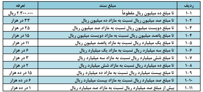 تعرفه جدید حق‌التحریر دفاتر اسناد رسمی کشور برای اجرا از تاریخ پنجشنبه ۱ شهریورماه ۱۴۰۳ برای عموم اطلاع‌رسانی شد.